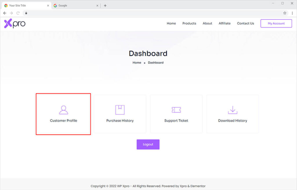 Once you’ve registered for an Xpro account, you can easily purchase a product or update your profile from the dashboard. Follow the steps below to see how you can update your Xpro Account Profile.