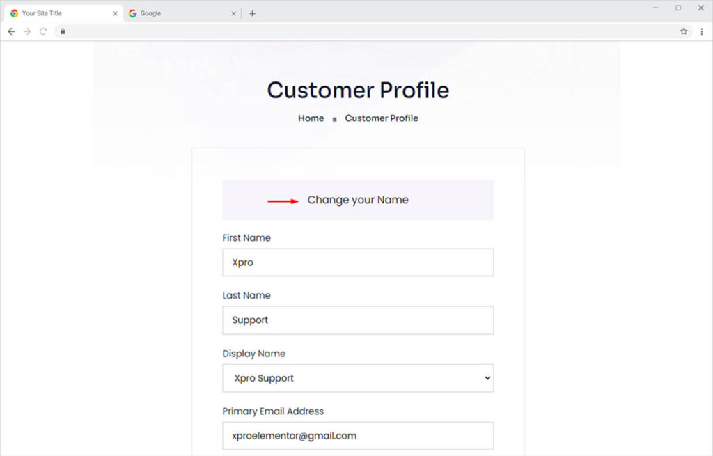 Once you open the ‘Customer Profile’ tab, you’ll see all details of your profile. You can update the following fields from the ‘Change your name’ section.