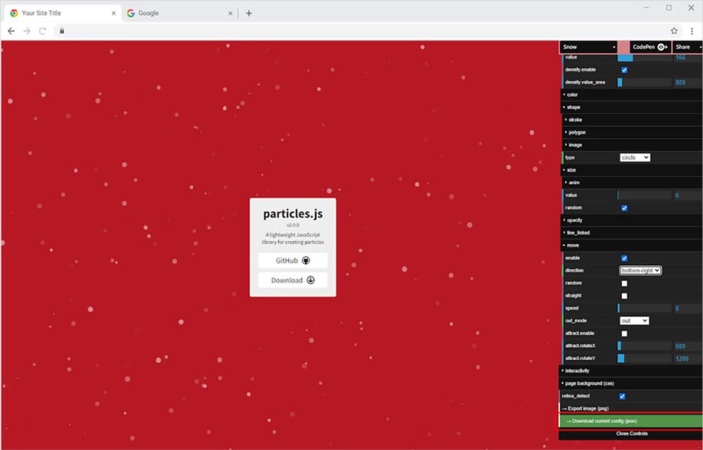 Click on the “Click Here” link and open the particles site from where you can add and modify particles.