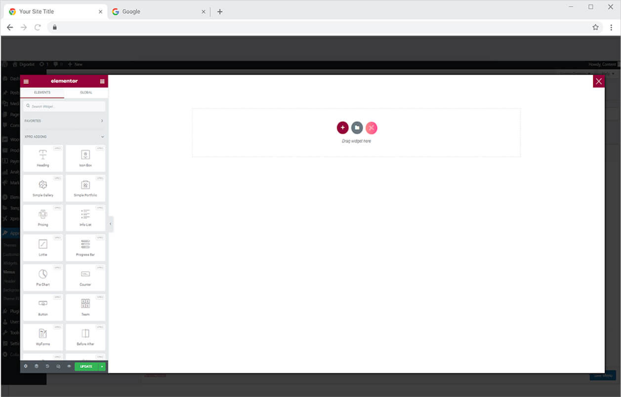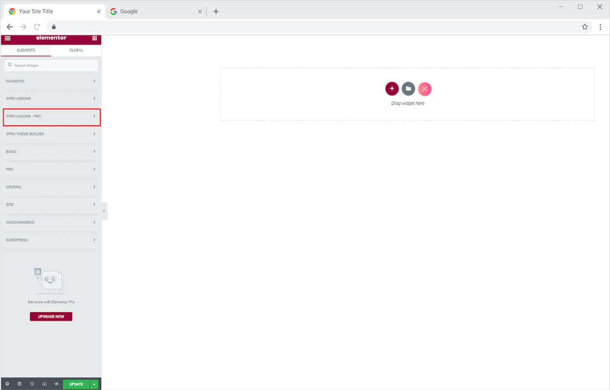 Click on the Xpro Addons – Pro section available in the Elementor Editor.