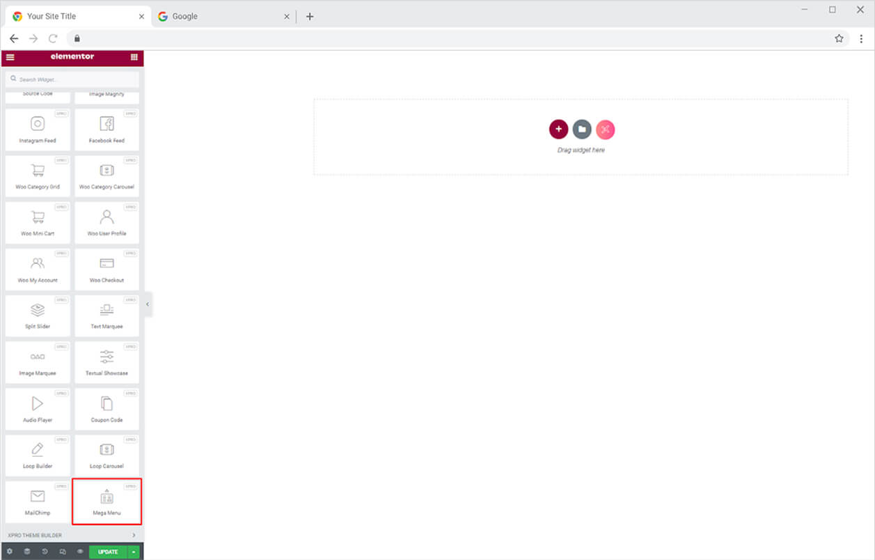 Search for Mega Menu in the search bar and drag’n’drop the widget to your desired page location.
