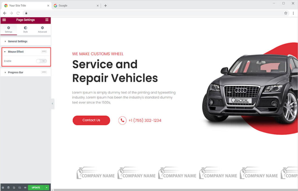 Provide your website users something to play with. Add an element to follow the mouse that attracts users and makes them stay on the website. After you activate the mouse effect from the WordPress dashboard, open the Elementor Page Builder and click on the setting icon at the bottom left.