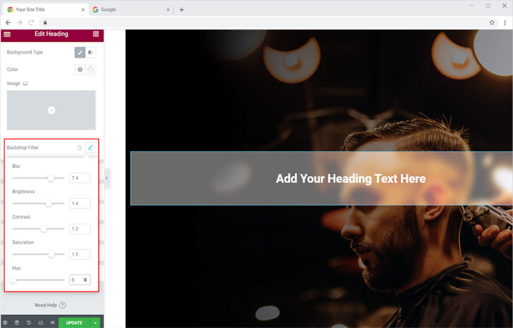 How to Use the Backdrop Filter Feature for Elementor