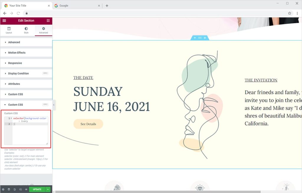 Here, I’m going to change the background color to ‘Ivory’ by applying custom CSS to this section.