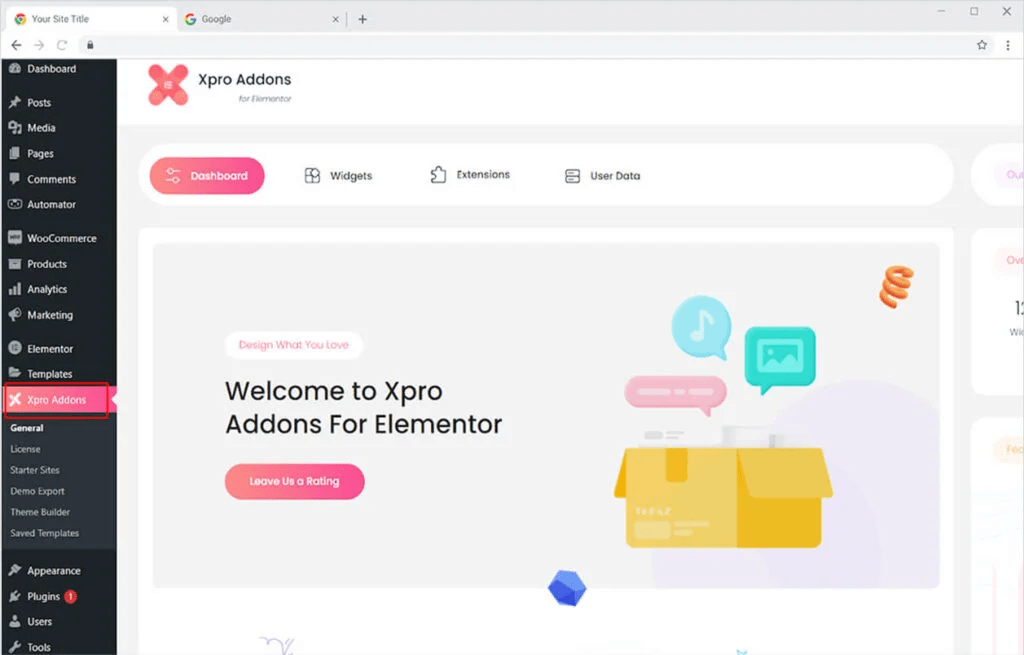 Click on the Xpro Addons option available in the WordPress dashboard menu.