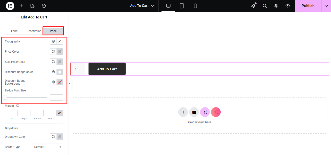 For the price in the variation, you can customize its typography and color. If you offering any discount then you have the option to add the color for the sale price, discount badge, and badge background. Furthermore, you can change the size of the badge.