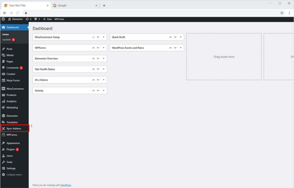 Click on the Xpro Addons option available on the WordPress Dashboard Menu.