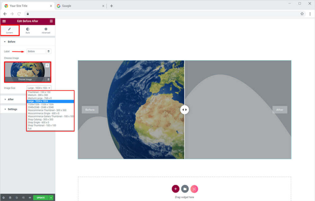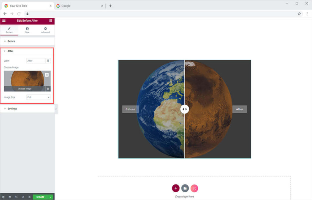 Now exactly following the similar steps you can add the after image from the After Section in the Content Tab.