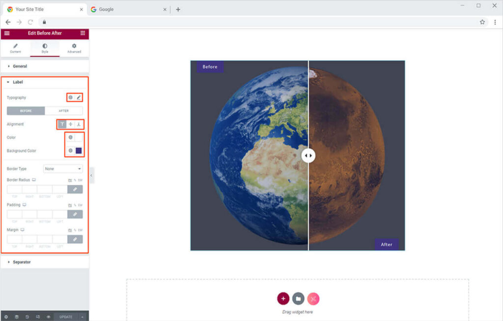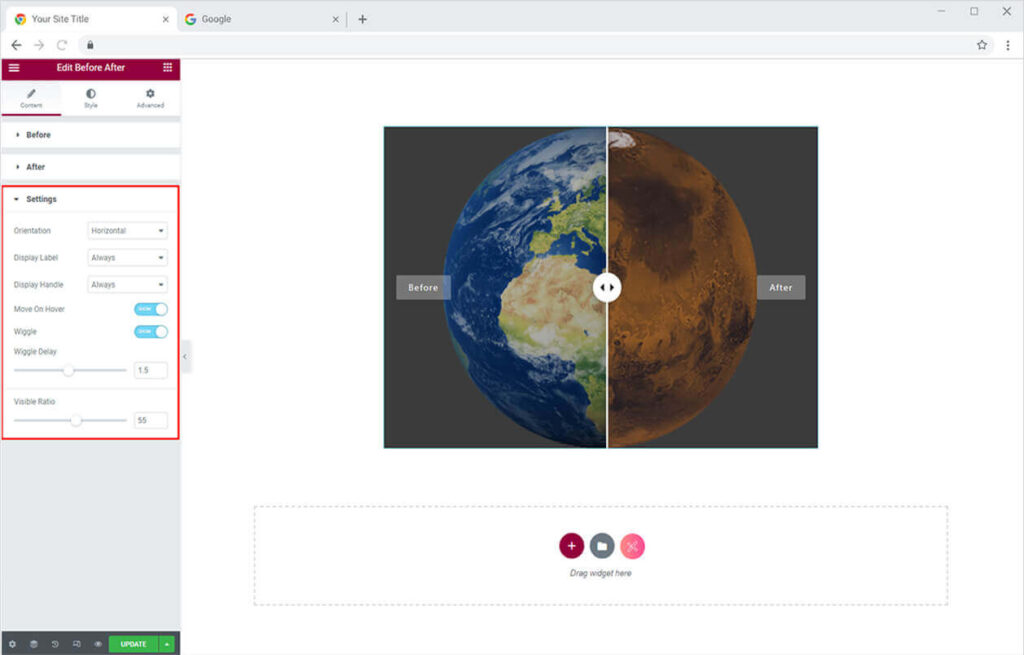 From the Xpro Addons section, simply drag’n’drop the Before After widget on your desired page location.