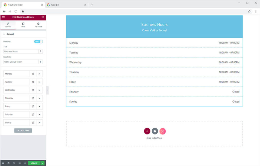 How to Add Business Hours in Elementor Business Hours Widget