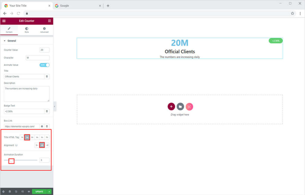 How to Add Content in Counter Widget for Elementor
