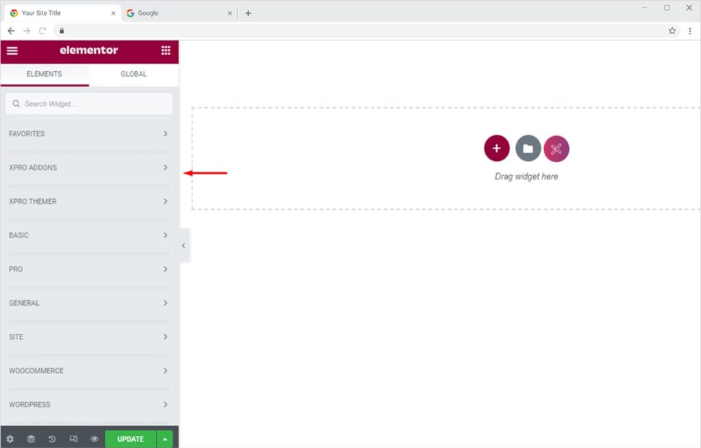 Click on the Xpro Addons section available on the Elementor Editor.