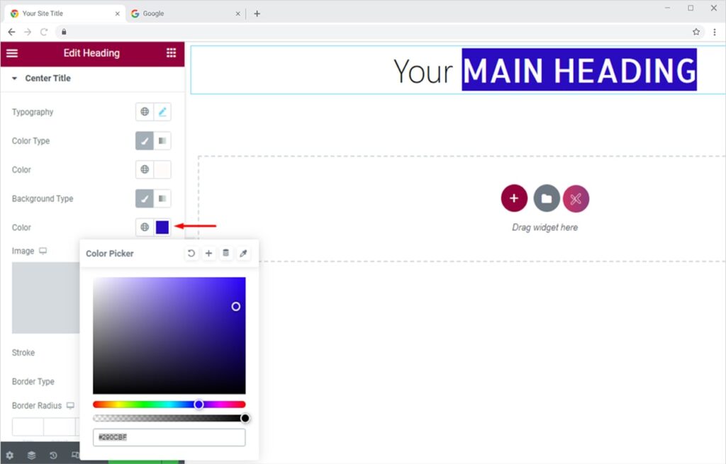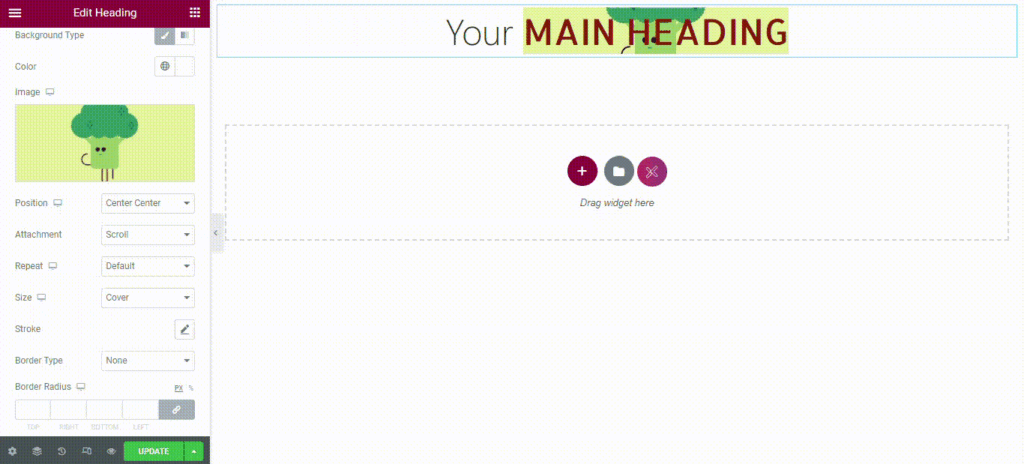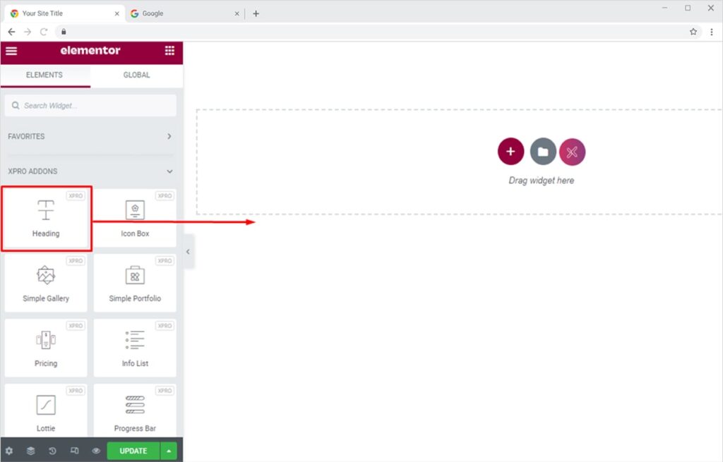 Select the Heading widget from the available list and drag’n’drop it on your desired page location.