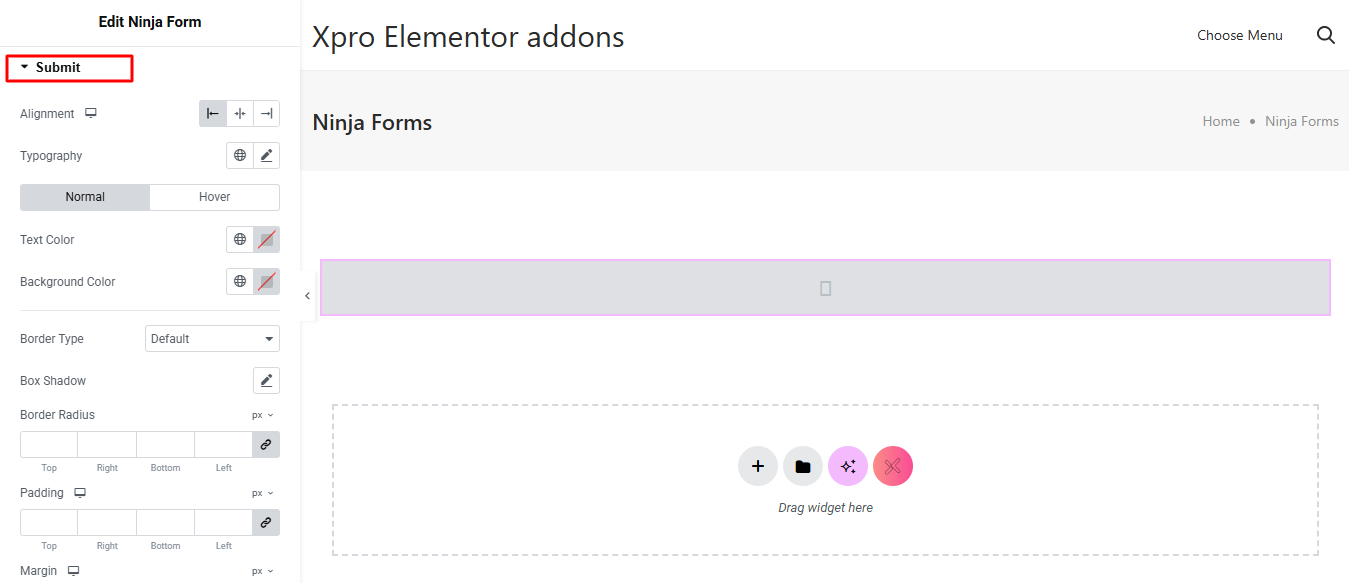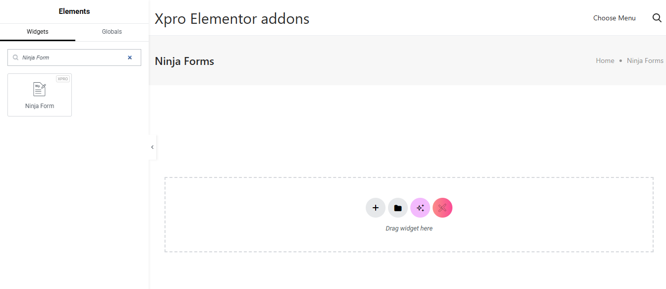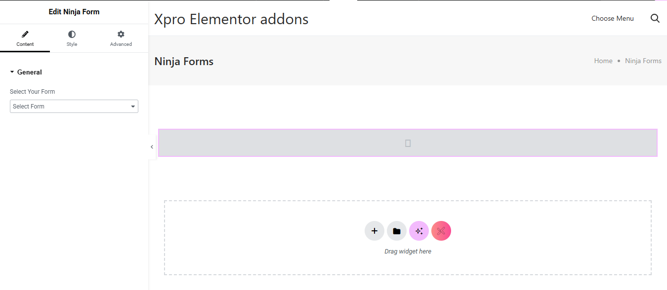 From the Xpro addon section, simply drag and drop the ninja form widget on the page.