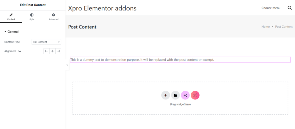 The Post Content widget is used in Elementor to manage the content and display it dynamically on your website. This is a Free theme builder widget by Xpro Elementor that can be used within a website theme builder to create and manage a singular post template or archive like a blog page or anything content related.