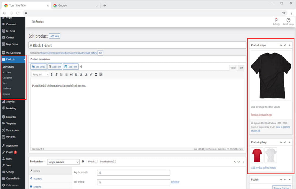 Create a product in the WooCommerce Product tab and add an image of your product.