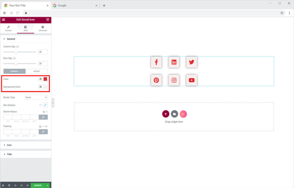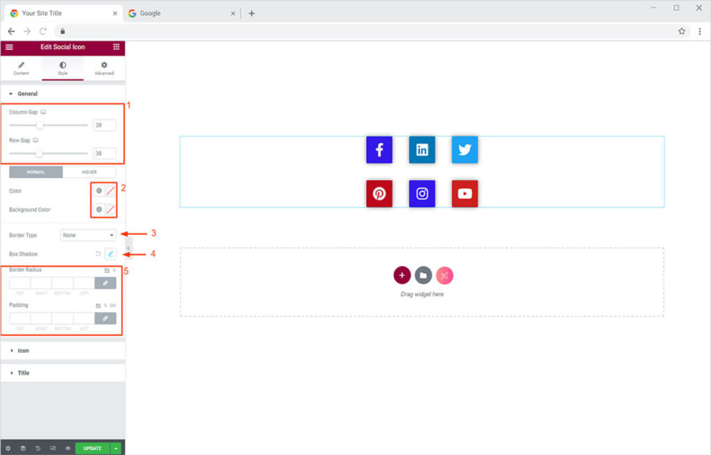 Now let’s style the Social Icons to make them look more attractive on the website. You can design your Social Icon widget with the following options from the Style tab: