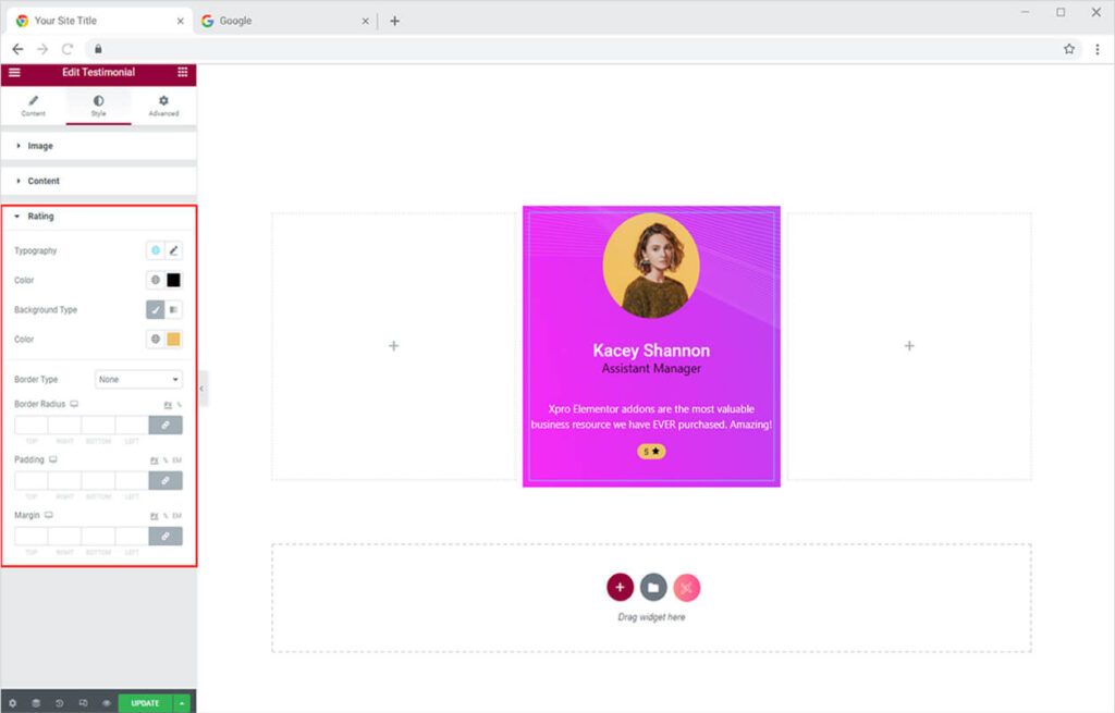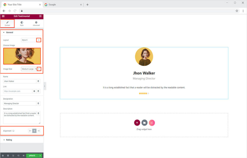 Everything on the internet these days required some styling magic to align with the theme of the website. So let’s explore the Style Tab to design your testimonial best according to the design and give an eye-pleasing view to the site visitors.