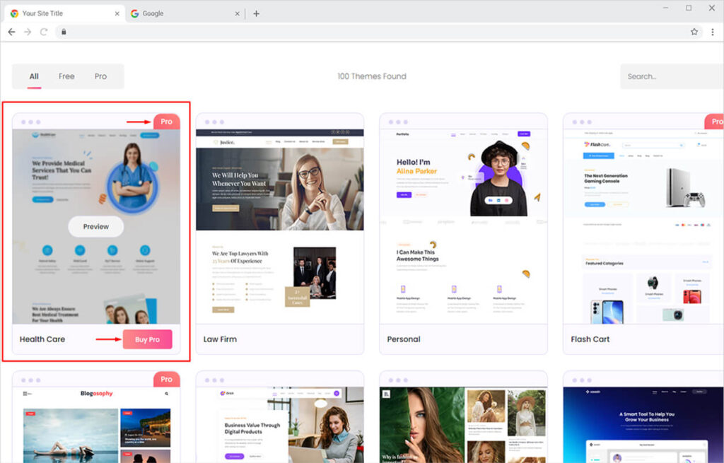 If you’re using the free version of Xpro Elementor Addons then you need to buy a premium bundle pack to use our Pro Starter sites. Simply hover over the starter site you like and click on the “Buy Pro button”.