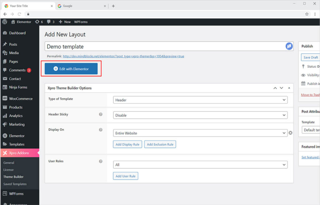 Once you have finalized your setting, click on the ‘Edit with Elementor’ button to edit your template.