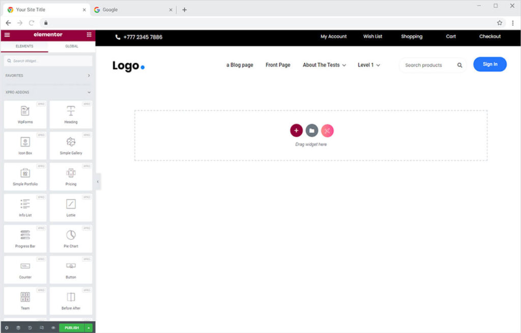 You will be redirected to the Elementor editor from where you can easily create a new header template using Free Xpro Elememtor Widgets.