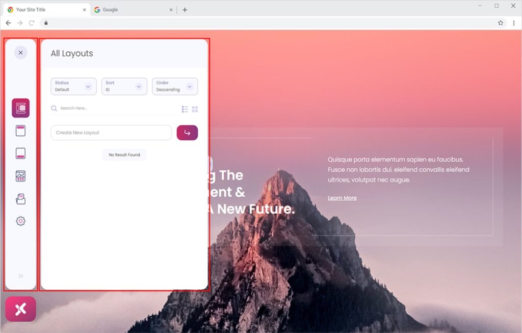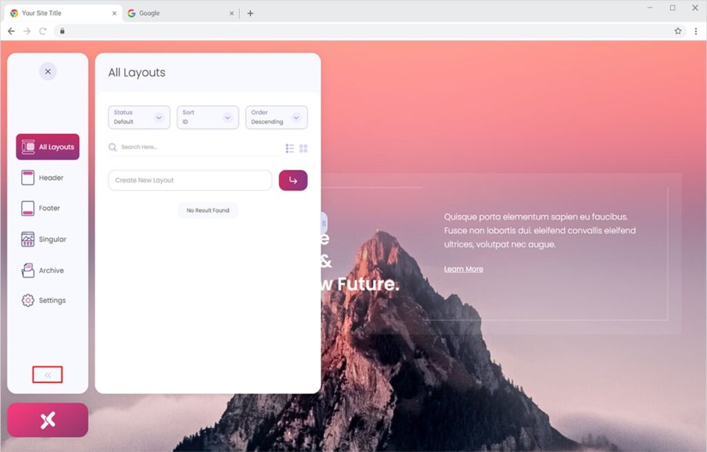 - Front-end Layout of Theme Builder