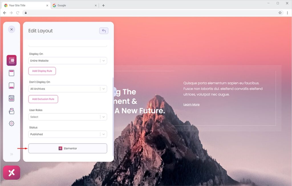 Back-end Layout of Xpro Elementor Theme Builder